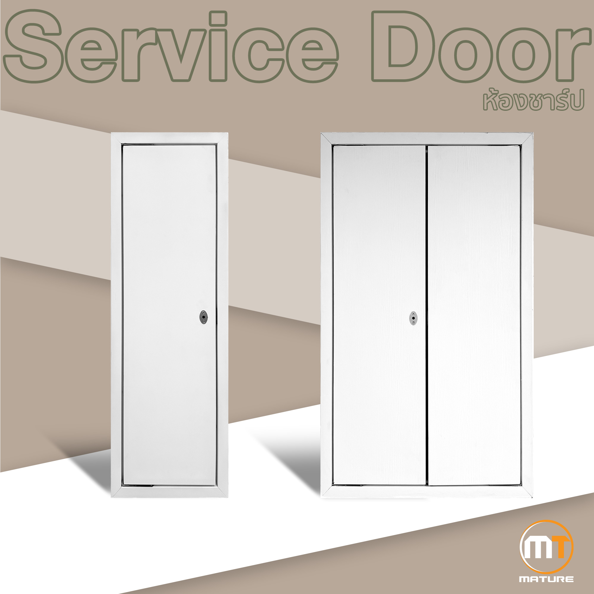 ประตู Service Door ออกแบบมาเพื่อการใช้งานที่สะดวก ทนทาน และดูเรียบสวย เหมาะสำหรับพื้นที่ใช้งาน เช่น ห้องครัว ห้องซักล้าง ห้องเก็บของ หรือทางออกด้านหลังบ้าน