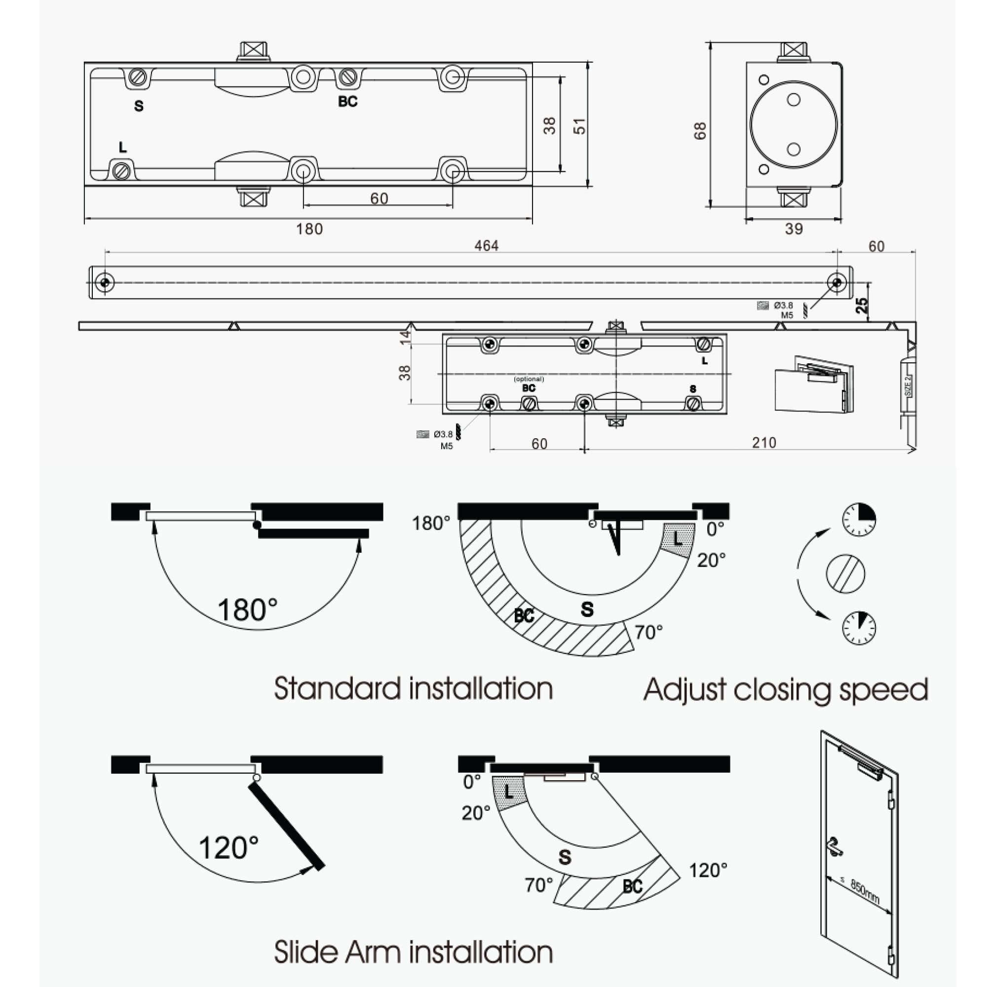 Door Capacity: Suitable for door weights ranging from 25 kg to 45 kg Door Width: Optimized for doors with a maximum width of 850 mm.